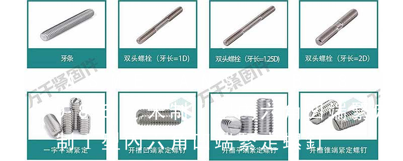 還有不銹鋼的,S04 S16等。比如螺釘的標準還有:DIN7991(內六角沉頭螺釘)DIN913(平頭內六角緊定)DIN914(尖端內六角緊定)DIN915 ( 柱端內六角緊定)DIN916 (凹端內六角緊定)螺絲—螺栓類 DIN933(外六角螺栓)DIN